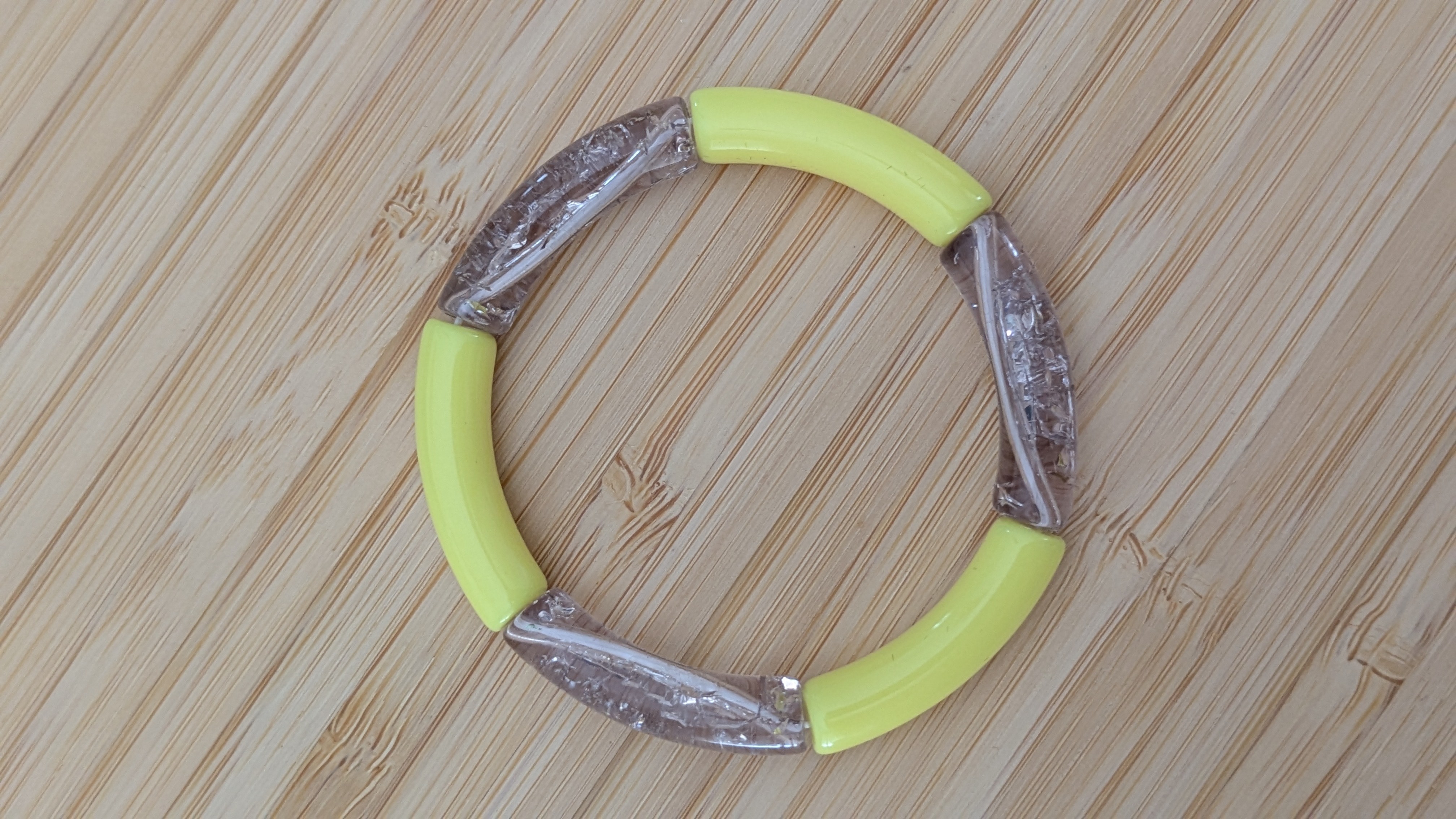 Elastique, il s'enfile facilement. Réalisé avec des perles acryliques lisses et craquelées pour un effet dynamique et texturé.