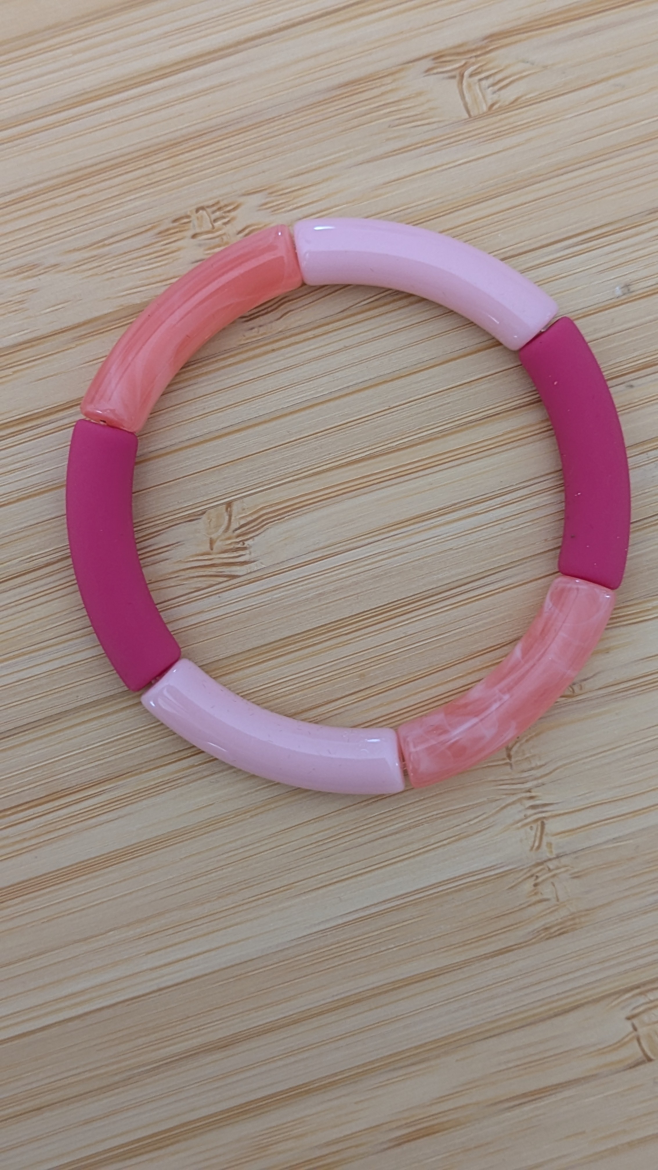 Elastique, il s'enfile facilement. Réalisé avec des perles acryliques lisses et craquelées pour un effet dynamique et texturé.
