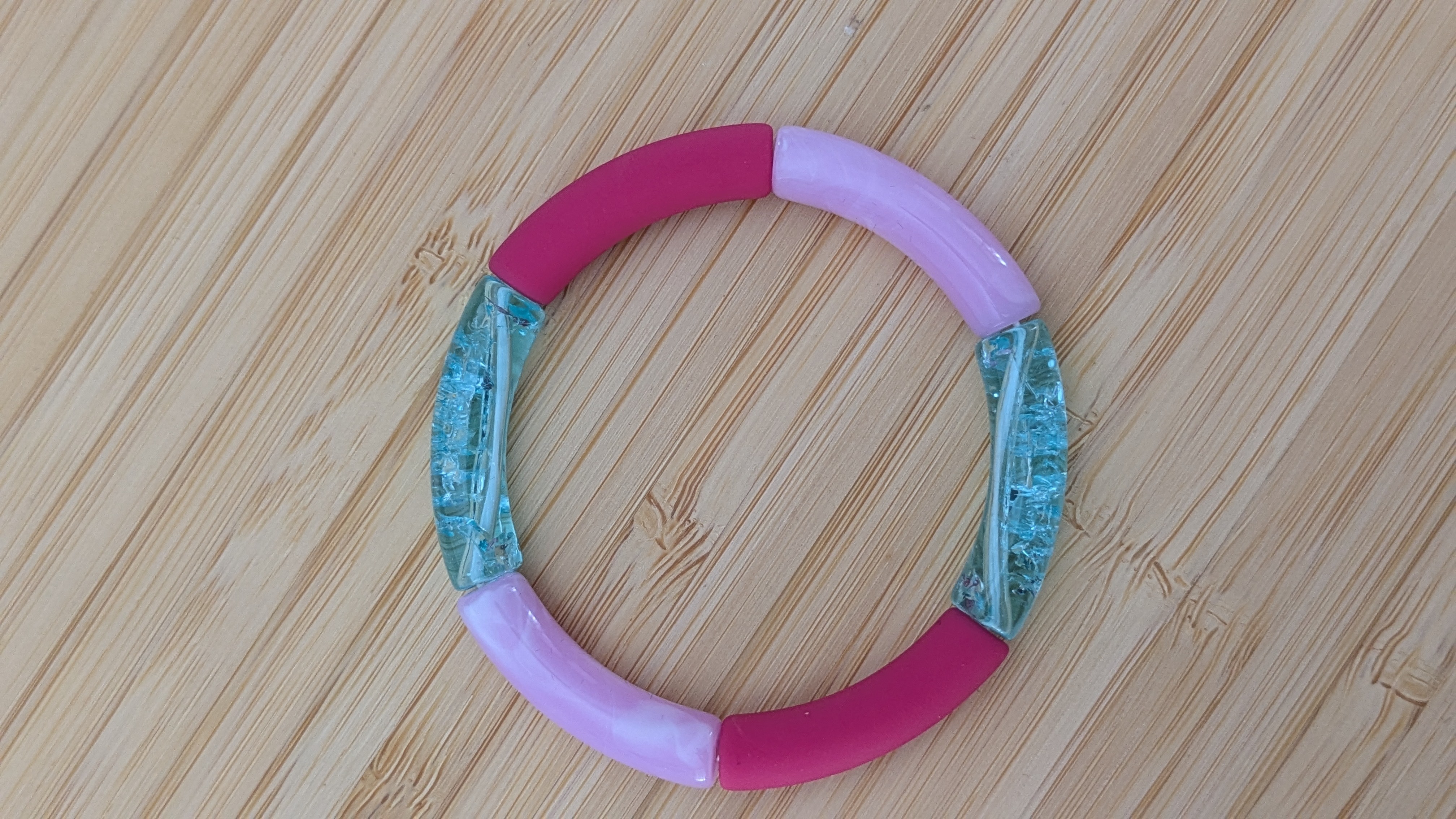 Elastique, il s'enfile facilement. Réalisé avec des perles acryliques lisses et craquelées pour un effet dynamique et texturé.