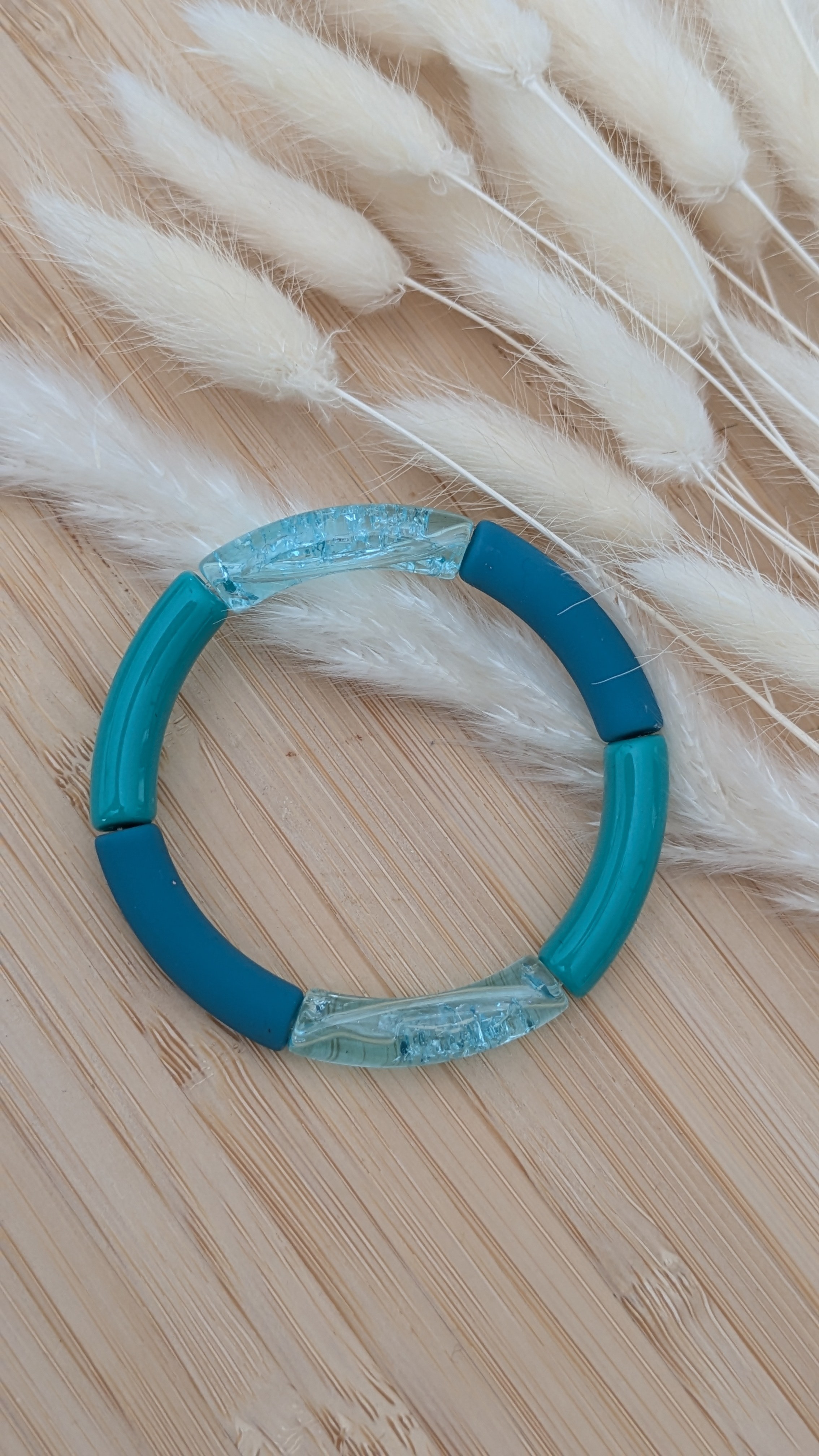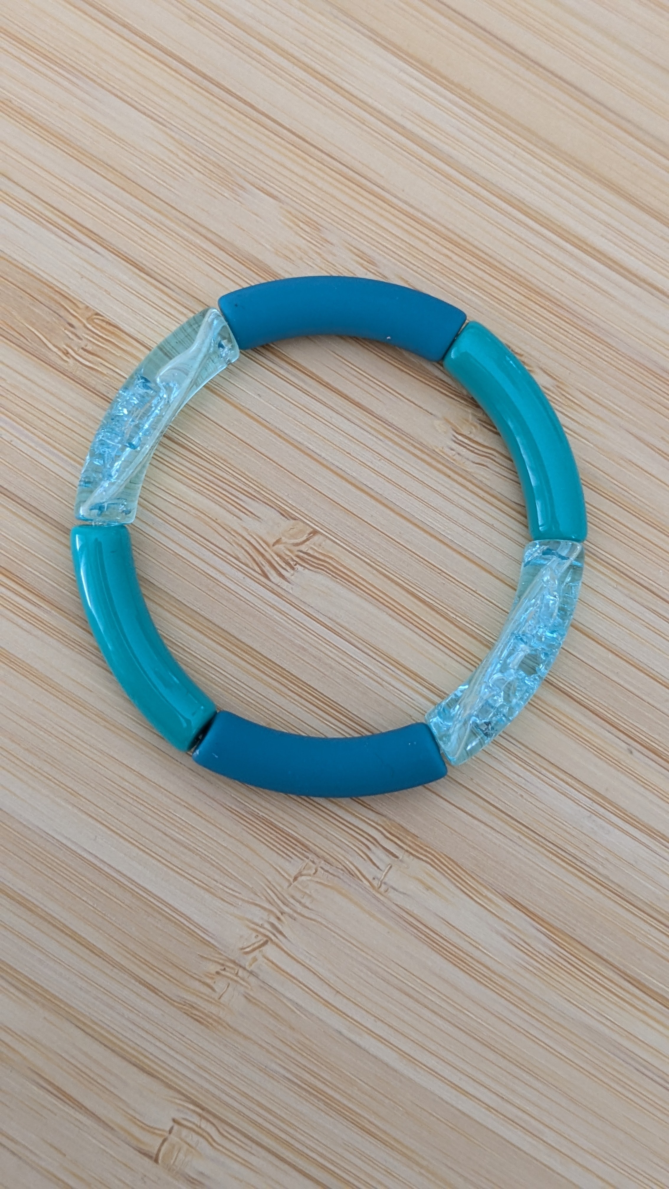Elastique, il s'enfile facilement. Réalisé avec des perles acryliques lisses et craquelées pour un effet dynamique et texturé.