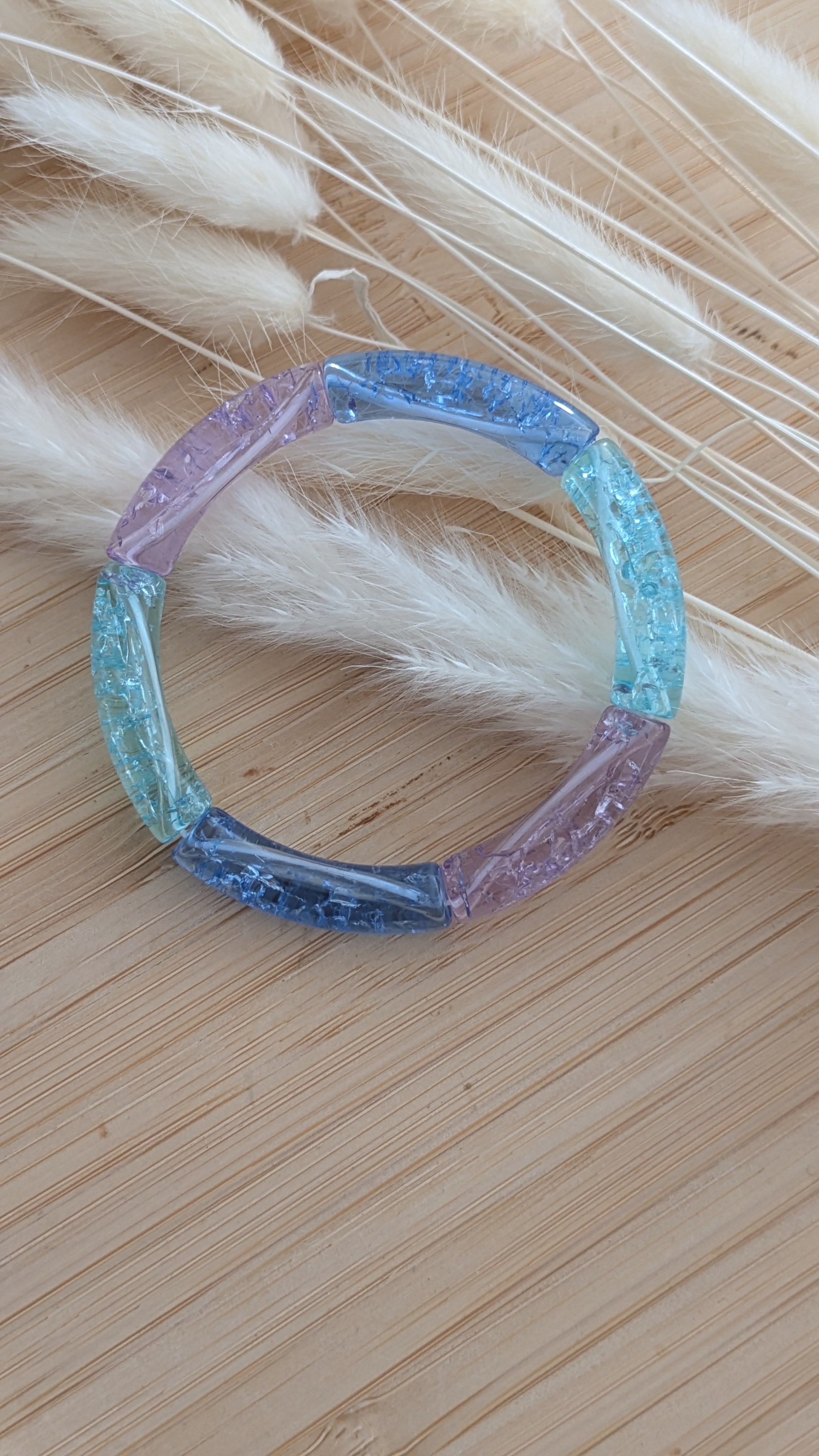 Elastique, il s'enfile facilement. Réalisé avec des perles acryliques lisses et craquelées pour un effet dynamique et texturé.