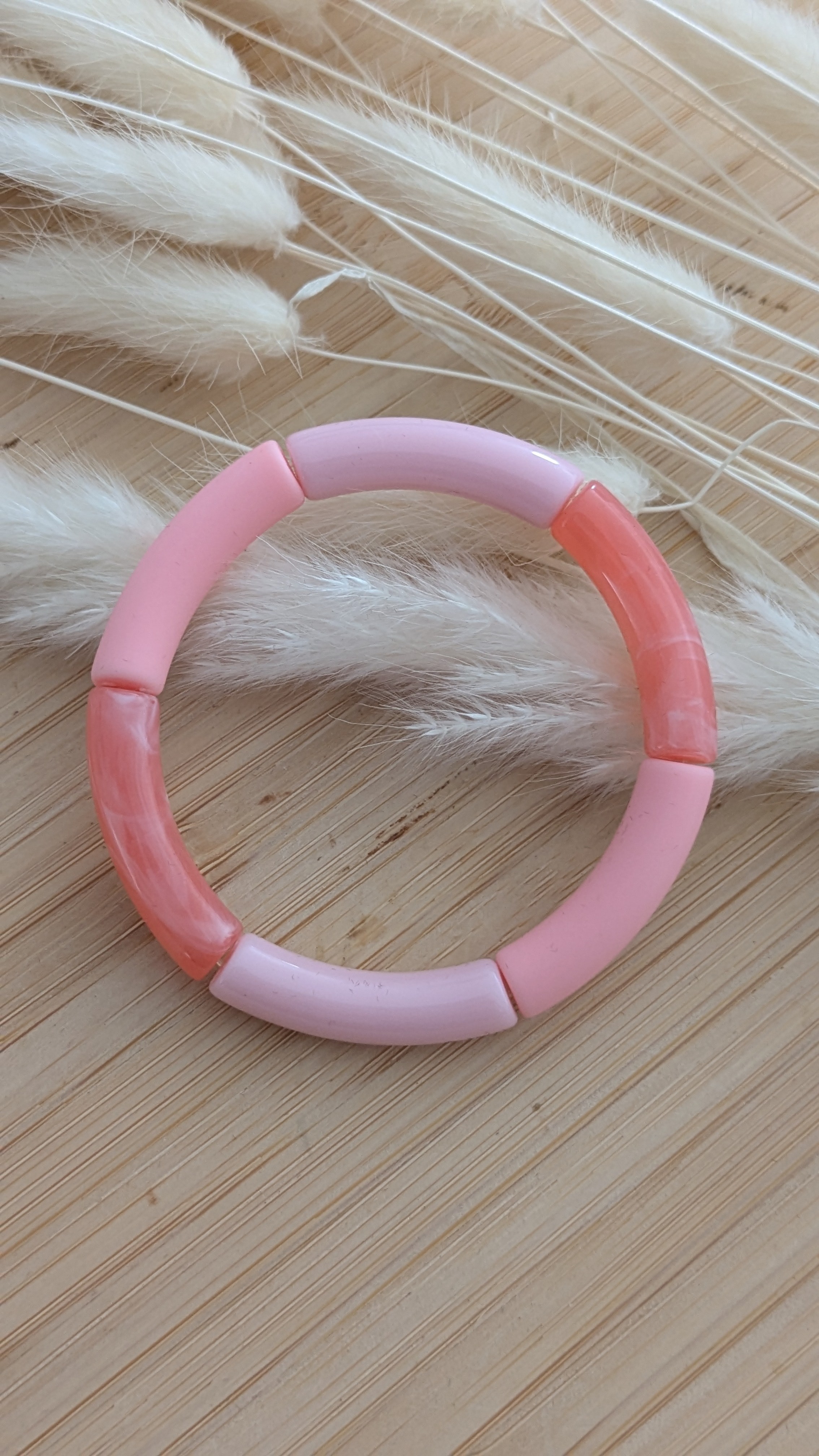 Elastique, il s'enfile facilement. Réalisé avec des perles acryliques lisses et craquelées pour un effet dynamique et texturé.