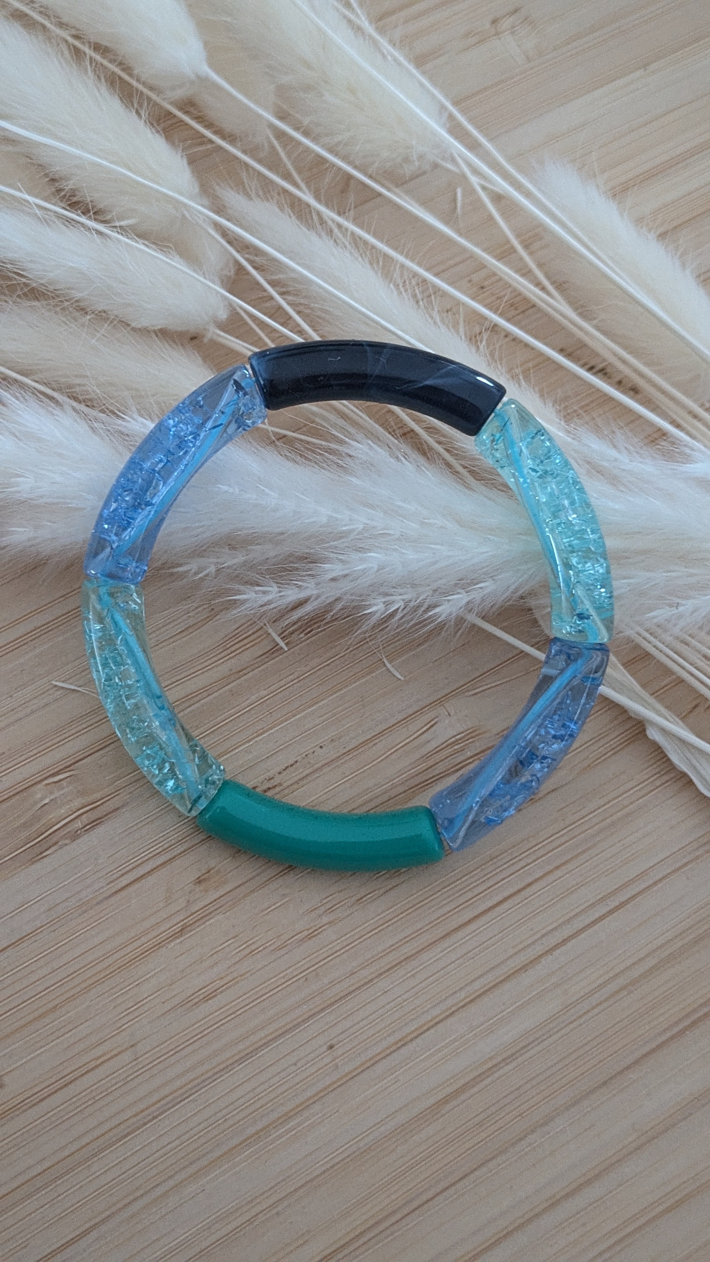 Elastique, il s'enfile facilement. Réalisé avec des perles acryliques lisses et craquelées pour un effet dynamique et texturé.